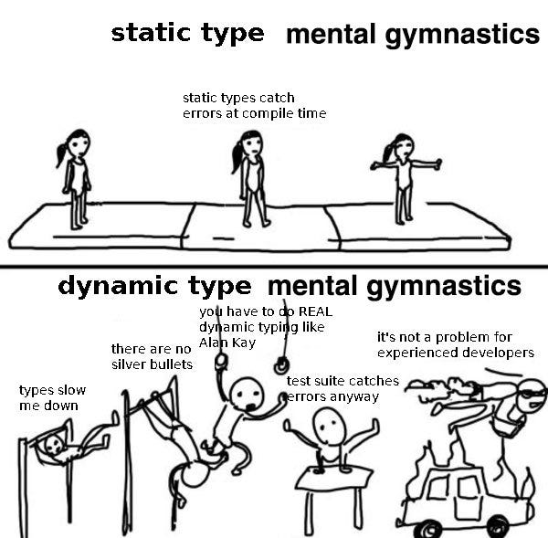 Back at the time, I found dynamic typing to be superior to static. That changed after I set out to give a talk on a local mini-conference in which my goal was to persuade the static typing camp that “hey, it’s not so scary and bad in dynamic-land!”. Oh, boy.